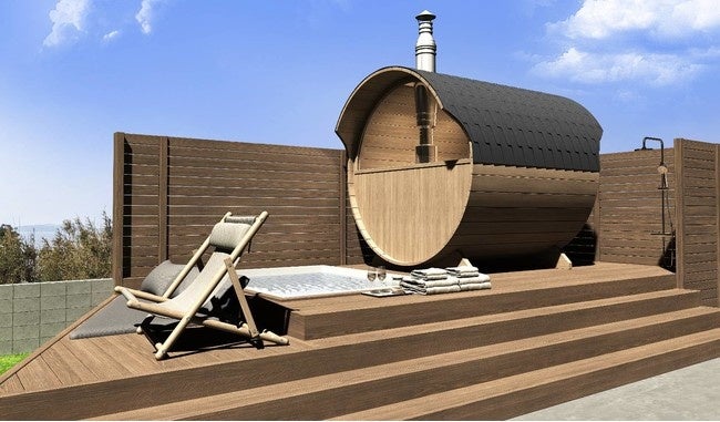 バレルサウナは樽型が特徴的な屋外用・屋内用のサウナです。円形の天井に沿って熱気が自然に降りてくるため、極上の蒸気を堪能いただくことが可能となっています。エストニアでは手軽に設置・堪能できるアウトドアサウナとして人気を博しており、近年日本でもホテルや温浴施設の露天風呂における設置が増えています。今回は離島初のエストニア産バレルサウナ導入です。